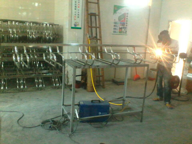 新恒安綠道通品牌自行車停放架車間生產(chǎn)焊接實物圖拍攝: